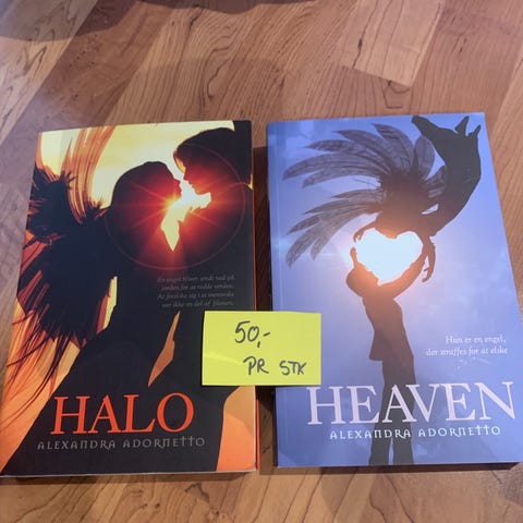 Alexandra Adornetto Heaven bog på engelsk. Paperback-roman i fantasy-/ungdomsgenren om engle og kampen mellem godt og ondt. Bogen er en fortsættelse i serien, der også omfatter titlen "Halo". Teksten er på engelsk og egner sig til læsere af YA-fantasy og romantiske fantasyfortællinger.