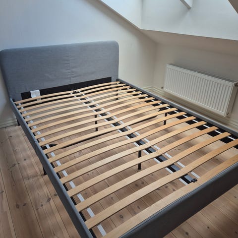 Kun sengerammen med 4x ben sælges.