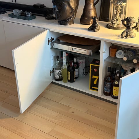 Hvid kommoder med skuffer og åbne rum
