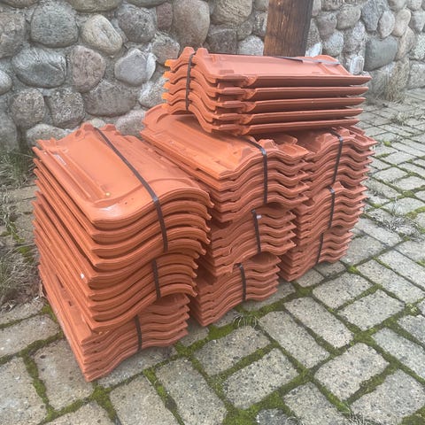 Gode tagsten fra Knapstrup teglværk… stort set rene for mørtel osv.