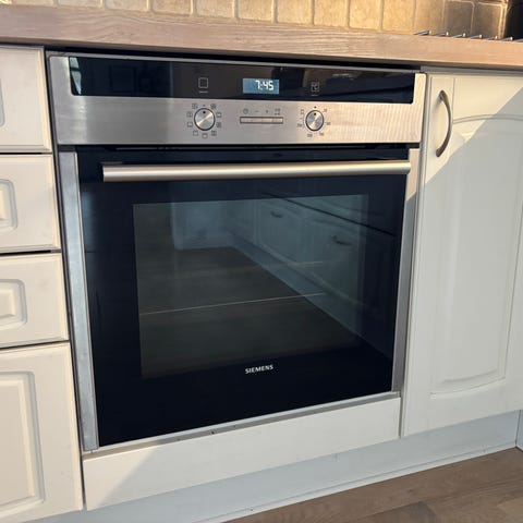 Siemens indbygningsovn med varmluftsfunktion og pyrolyse og hurtigopvarmnings program. Ovnen er udført i rustfrit stål med sort glasfront og mekaniske drejeknapper til temperatur- og funktionsvalg. Indvendigt har ovnen flere riller til bageplader og riste samt ventilator bagi til varmluftscirkulation. Velegnet til indbygning i køkkenmodul og til almindelig madlavning og bagning med varmluft.