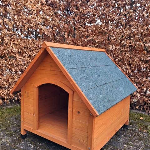Træ hundehus med tag og pude