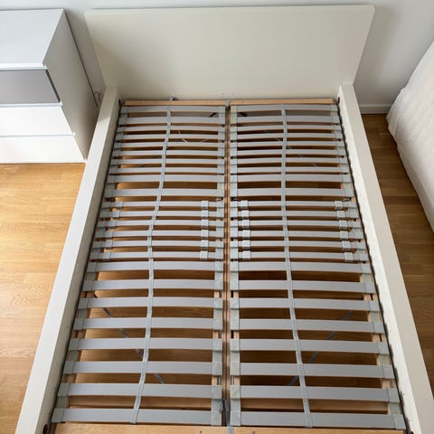IKEA MALM seng med opbevaring og VÅGSTRANDA springmadras 160x200 hvid