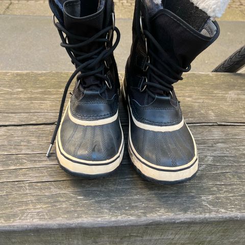 Brugt kun to gange. Snørelukningen sikrer en tætsiddende pasform i disse vinterstøvler. Designet har en quiltet nedre del og en farveblokket overdel, der giver både stil og varme til eventyr i koldt vejr.