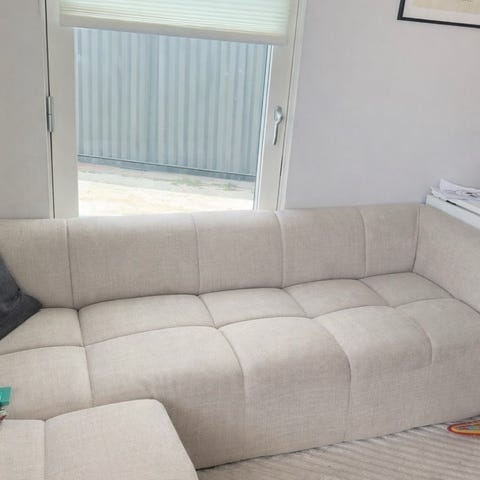 sofa med chaiselong fra Myhome.. måler 250x220 cm.. Den står pæn og velholdt.. egner sig til en lille stue, kan ikke spejlvendes.. nypris 8999 kr sælges for 4500 kr.. farven er blå/grøn.. den er ca 1 1/2 gammel.. skal hente I Store Merløse på Midt Sjælland eller bringes for købers regning mod forudbetaling..