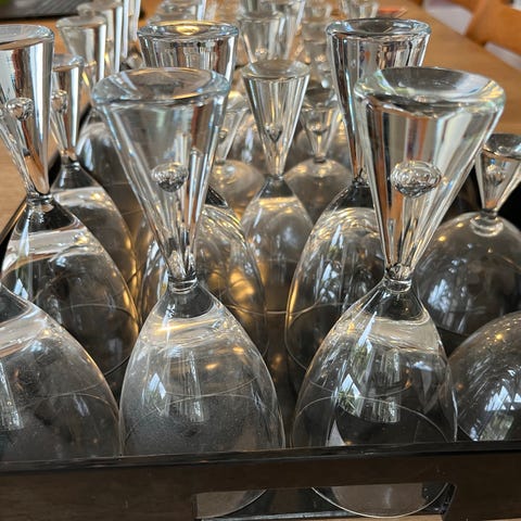 Glasset har en markant, massiv fod og et Klassisk design i transparent glas, som passer ind i de fleste borddækninger. Der er 9 rødvins glas og 8 snapsglas.