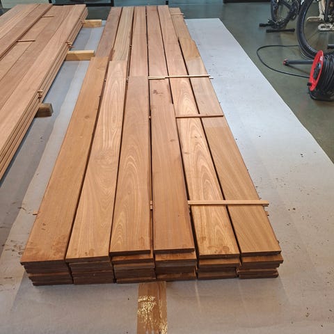 Brasiliansk hårdt træ ca 15 år gammelt, men i god stand grundet den høje kvalitet.
