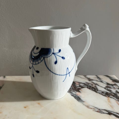Royal Copenhagen Blå Mega Riflet kande 38 cl hvid porcelæn