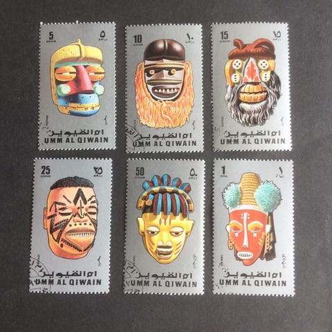 Mellemøsten, stemplet, Umm Al Qiwain. Helark masker