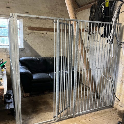 Hundebur fra det anerkendte svensk firma MINsafe. Bredde: 70cm, højde 84,5cm og dybde 92-116cm. Vi har brugt det til en Rhodesian Ridgeback på 37kg. Ny pris 5.700,-