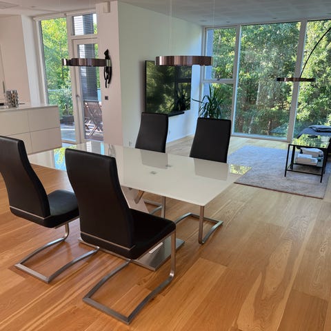 20 år gammelt Moment bord fra Ikea. De små plastdutter under pladen er væk for længst, men det har ingen betydning for bordets stand eller funktion. Stellet har selvfølgelig lidt brugsspor - men ellers ingen fejl.