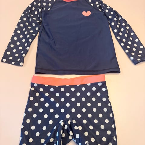 Småfolk UV dragt med lange ærmer og ben. Lynlås. Str. 104-110.