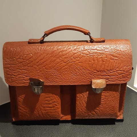En klassisk sidetaske i retro-design til cykel eller veteranknallert f.eks. Velo Solex, Velo Vap, NSU eller Stafette. Meget charmerende og fin stand. Den var indkøbt til et projekt, som ikke blev til noget - har ikke været brugt.