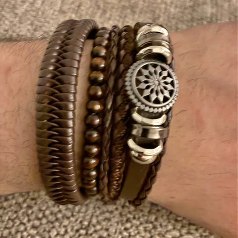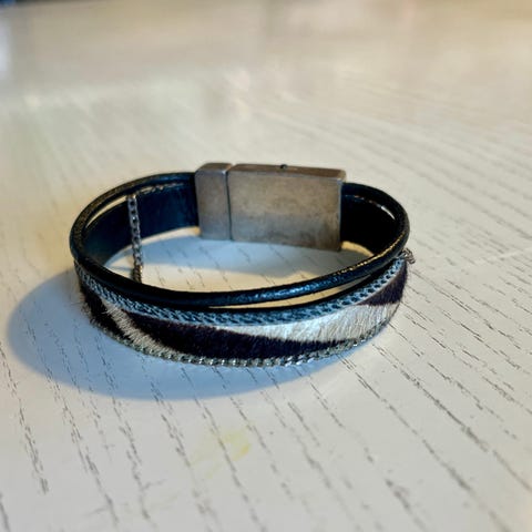 Flot og elegant herrearmbånd i sort læder sælges. Det kan bruges både til hverdag eller til fest. Det fåes i 21 cm.