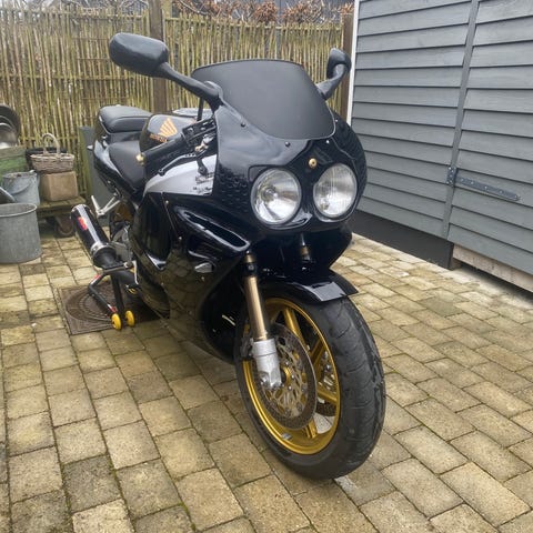 Honda CRF crosser 50 cc fire takt i rød og hvid. Kompakt offroad-motorcykel med små hjul og lav sædehøjde, egnet til børn eller mindre førere. Udstyret med knopdæk, tromlebremser og traditionel styrkonstruktion. Plastkåber og sæde i klassisk Honda-farvekombination rød/hvid. Velegnet til kørsel på grus, have eller mindre baner, hvor der er behov for en let og overskuelig Crosser
