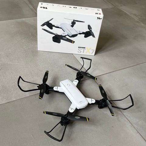 Rigtig god begynderdrone, købt hos Morfars. Har knækket en enkelt propel, men der er ekstra med i kittet.