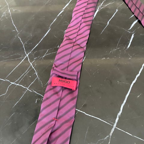 Tiger of Sweden slips til mand med brede, diagonale striber i lyseblå og mørkeblå nuancer. Klassisk model egnet til brug sammen med skjorte og jakkesæt ved formelle og semi-formelle lejligheder. Aldrig brugt