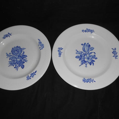 Victoria Spain tallerken fra 1969 i blå porcelæn. Tallerkenen har motiv med månelandskab, fodspor og flag, samt årstallet 1969 præget i kanten. Velegnet som samlerobjekt eller dekoration. Royal Copenhagen 1. Sortering 18,5cm. Kr. 50,00, 6 stk kr. 250,00