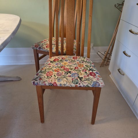 - Jeg sælger disse fine træstole.
