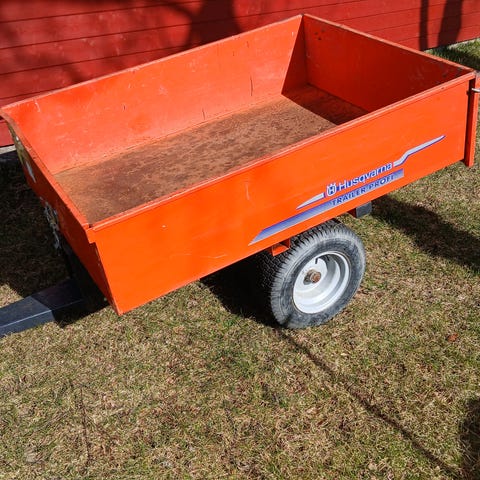 John Deere havetraktor & havetrailer. Jeg ved ikke om den nogensinde kan komme til at køre igen - men evt reservedele, og så en havetrailer.
