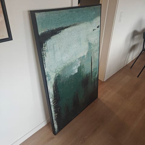 Fra entré til hyggekrog - vægkunst med nærvær. Forestil dig en detalje der fanger blikket, når du træder ind i rummet. Ingus er et lærredsbillede, der skaber en visuel fortælling med sine blå og grønne nuancer. Det er skabt til både hverdagsøjeblikke og særlige stunder, hvor det tilfører varme og dybde til din indretning.