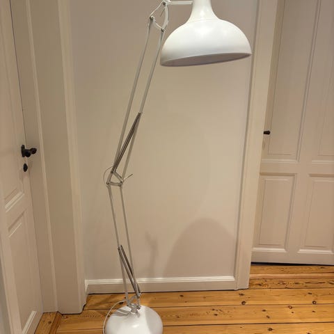 Lampen er i rigtig god stand og fungerer fejlfrit. Den står stabilt på sin karakteristiske v-formede fod og fylder visuelt meget lidt i rummet.