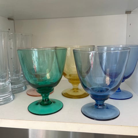 5 Ideelle vandglas fra Holmegaard i pæn stand.