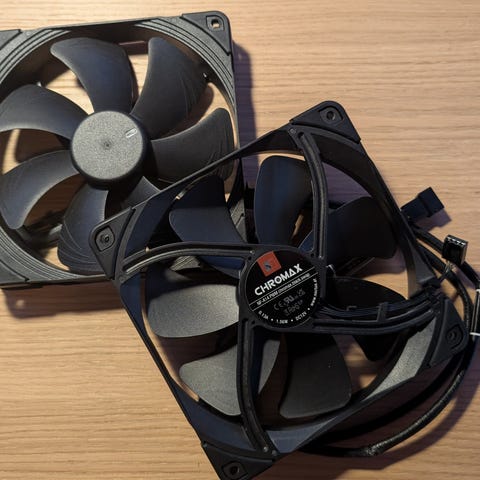 1 stk x Noctua NF-A15 PWM chronmax.black.swap fra Maj 2025. I god stand. Sorte kant dupper til begge sider edfølger, samt grøn/rød/blå for den ene side Inkl. 1 stk. "forlænger" kabel og low-noise adapter.