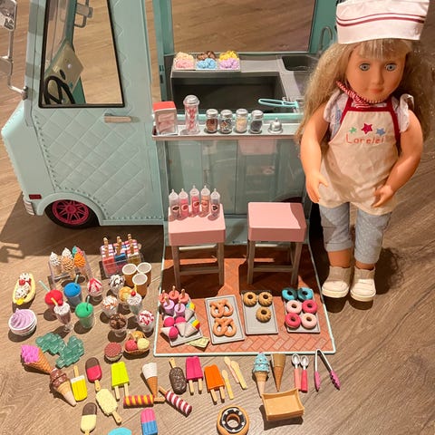 Our Generation isbil til salg + lidt ekstra tilbehør. Den er i god stand (ikke brugt meget) og alt virker som det skal ( udover vinduesviskerne ).