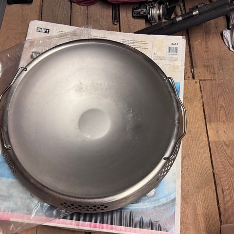 Weber Wok grillindsats 57 cm i stål. Wok-indsatsen er designet til brug på kuglegrill med en diameter på 57 cm. Den runde form og høje kanter gør den egnet til tilberedning af wokretter, grøntsager og mindre stykker kød direkte på grillen. Fremstillet i stål med perforerede sider, der giver god varmefordeling og luftcirkulation under tilberedning. Velegnet til grillmad, hvor der ønskes høj varme og hurtig stegning i wok.