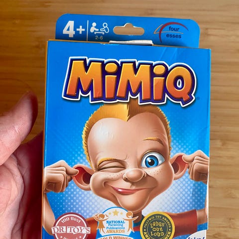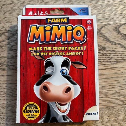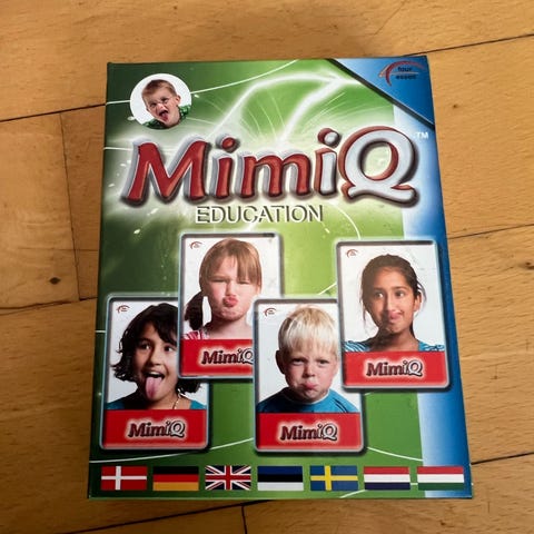 Mimiq kortspil for børn fra 4 år. Spillet går ud på at efterligne ansigtsudtryk for at samle sæt af kort. Egnet til flere spillere og kan bruges som familiespil eller til leg med venner. Spillet understøtter mimik og observationsevne hos børn.