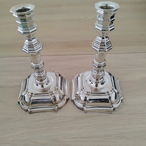 3 Lysetager, Sølvplet, 3 Lysestage I Sølvplet.