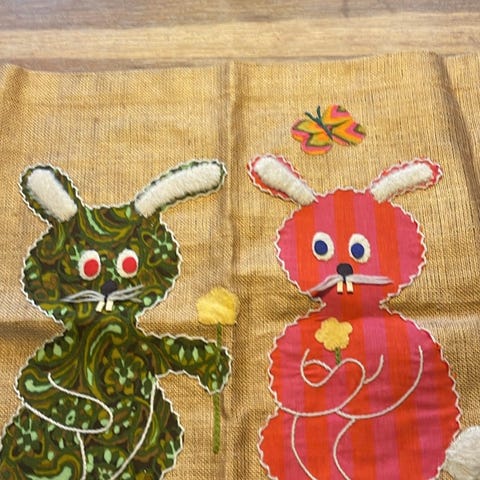 Stort håndlavet påskeophæng fra Creme de la Creme a la Edgar. H: 25 cm. (målt u. ophængsnor). Applikeret, broderet med håndsyede detaljer.