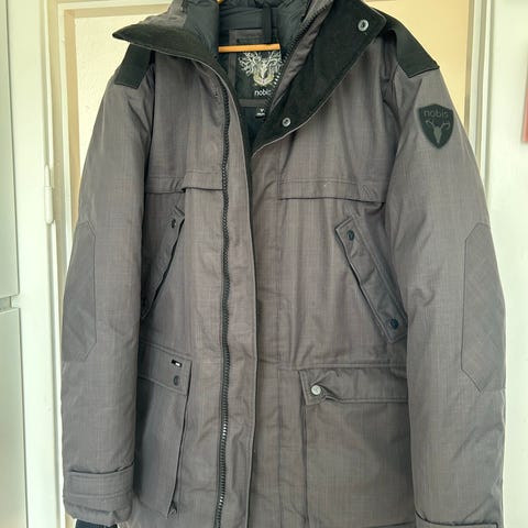Vinterjakke, str. XXL, Nobis, Mørkeblå, Nobis jakke str. XXL i mørkeblå. En jakke med de lækkerts detaljer og i bedste kvalitet. Lommer udvendigt, inderlommer, lynlås under ærmer, hætte og pelskrave der kan lynes af m.m.