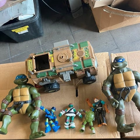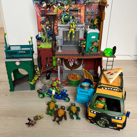 Ninja Turtles legesæt med bil og scooter. Alle dele er I sættet.