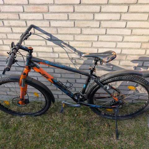 Cyklen er ikke specielt pæn, den har stået ubrugt i skur de sidste 5 år, har flade dæk(dog ikke punkteret) og trænger til en kærlig hånd.