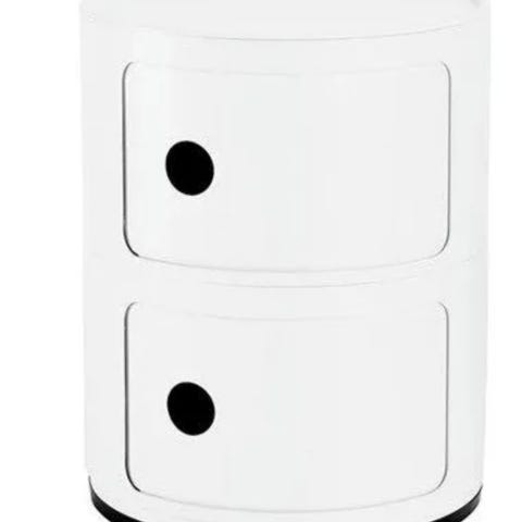 Hvidt Kartell skab med tre rum. Kan bruges som sengebord, skab i gang, børneværelset, kontoret etc.