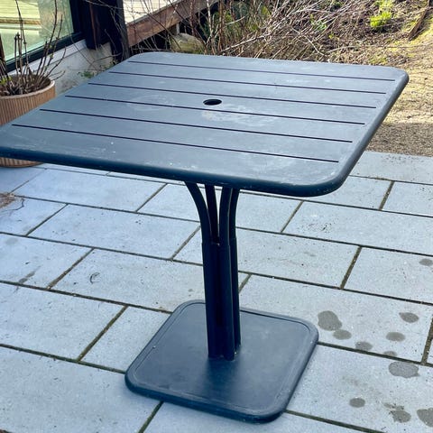 Søger bordben til Fermob Luxembourg-havebord. Bordplade haves (100 x 207 cm). Farve underordnet.
