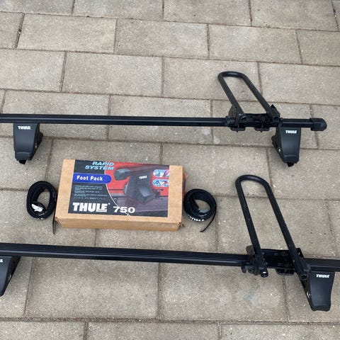Sælger et sæt CRUZ Airo T tagbøjler i aluminium inkl. beslag.
