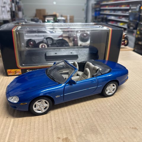 Maisto Jaguar XJ220 modelbil i skala 1:18. Modellen er udført i sølvfarve med detaljeret karrosseri og interiør. Bilen leveres i original æske fra Maisto Special Edition-serien og er egnet som samlerobjekt eller udstillingsmodel. Karrosseriet er primært i metal med plastdetaljer, og hjulene er rullende. Modellen gengiver Jaguar XJ220 sportsvognen med karakteristiske linjer, luftindtag og bagspoiler.