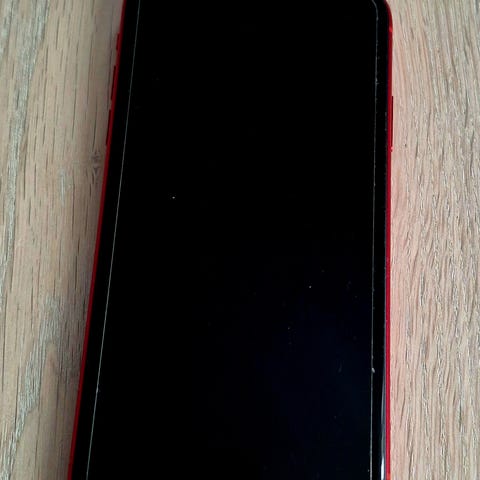 Apple iPhone XR smartphone med 128 GB intern hukommelse. Modellen er vist i blå farve med glasbagside og aluminiumsramme. Skærmen er en fuldfront-touchskærm. Enheden egner sig til almindelig brug som opkald, beskeder, internet og apps. Billederne viser, at der er synlige revner i skærmens glas, og at telefonens skærm ser ud til at være løftet en smule fra rammen på siden, hvilket kan indikere behov for reparation eller udskiftning af skærm eller batteri. Sælges som Apple iPhone XR med 128 GB lagerplads i blå farve.