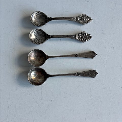 Saltske med dekoration og hammerslået skaft. Tretårnet sølv 830s.