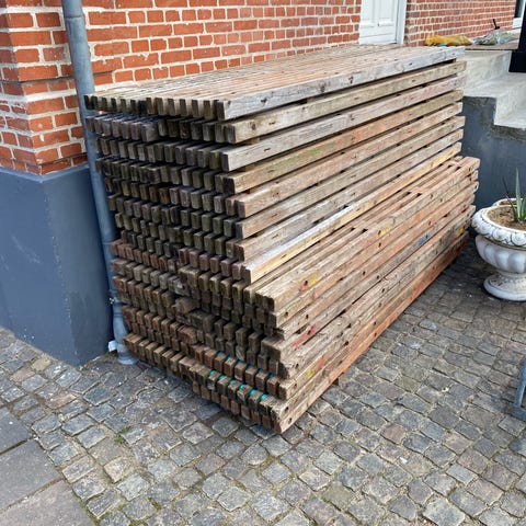 Galvaniseret stålstillads bestående af flere rammer, rør og tilbehørsdele. Egnet til midlertidige arbejdsplatforme ved bygge- og renoveringsopgaver. Konstruktionen er i metal med overfladebehandling, der er velegnet til udendørs brug. Sælges som samlet parti, som på billederne.
