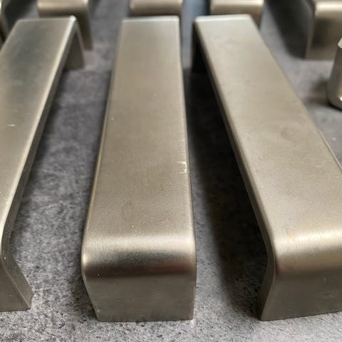 Grebene har lige, rektangulær form med medfølgende skruer til montering. Egnede til skabe, skuffer eller andre møbler, hvor der ønskes ensartede, aflange metalgreb i chrom.