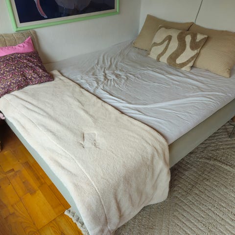 To boxsenge på 60 cm bredde og 200 cm lange. Kan anvendes hver for sig eller fælles. Stor topmadras på 160 cm til begge medfølger. Benene skrues nemt på. Sengene er kun anvendt nogle få måneder.