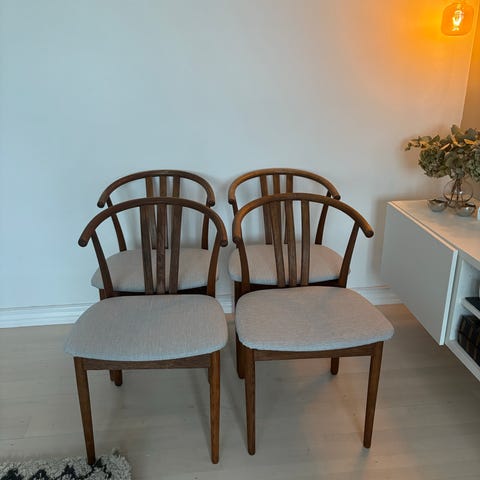 4 stk spisebordsstole i træ med sort metal sælges, de er købt herinde for et par uger siden, men passer desværre ikke til vores hjem.