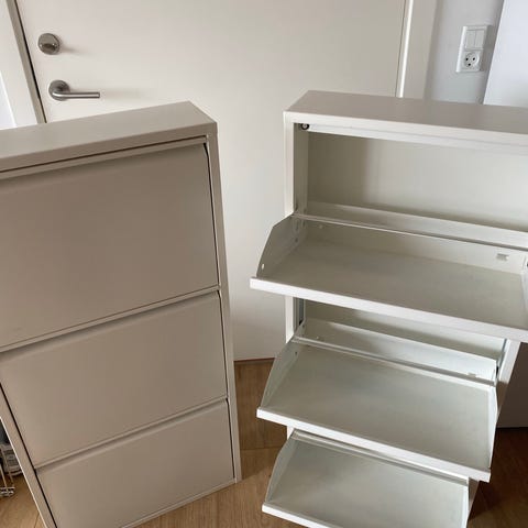 To sorte skoskabe fra Jysk sælges. Brugt, men er i okay stand. Ingen skrammer eller lignende.