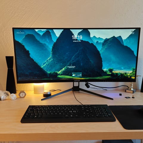 Cepter C38ATILIUS gamingskærm med 38" buet skærm. Skærmen har flere HDMI- og DisplayPort-indgange samt integreret RGB-lys på bagsiden. Egnet til gaming og generel pc-brug, hvor der ønskes et bredt og buet billedformat. 9 måneder gammel som ny, kvittering haves og der er garanti på skærm indtil juli 2027. Betalt 3,000kr.