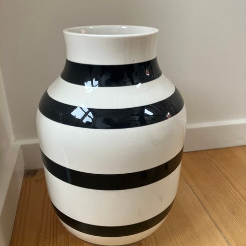 Kähler Omaggio vase i keramik i grøn nuance. Vasen har den karakteristiske riflede/stribede overflade og er signeret i bunden af designeren Hans-Christian Bauer. Egnet til dekoration og til opbevaring af blomster eller grene i hjemmet.