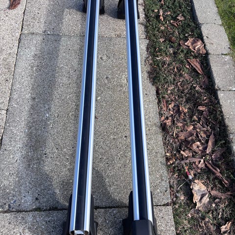 BMW tagbøjler i aluminium med sorte plastender. Bøjlerne er låsbare og leveres med momentnøgle og 2 nøgler. Passer til G30, dvs BMW 5 Sedan. Har siddet på en 530i fra 2020. Velegnet som base til montering af tagboks, cykelholder eller andet tagtilbehør.